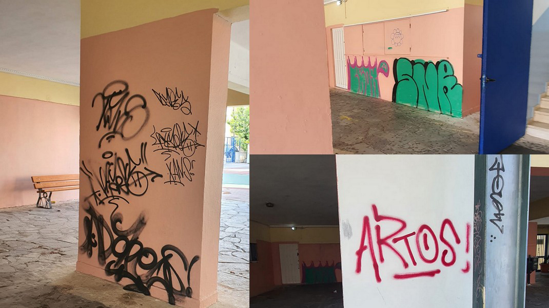ΧΑΛΚΙΔΑ: Μουτζούρωσαν με γκράφιτι τους τοίχους του 1ου Πρότυπου Λυκείου