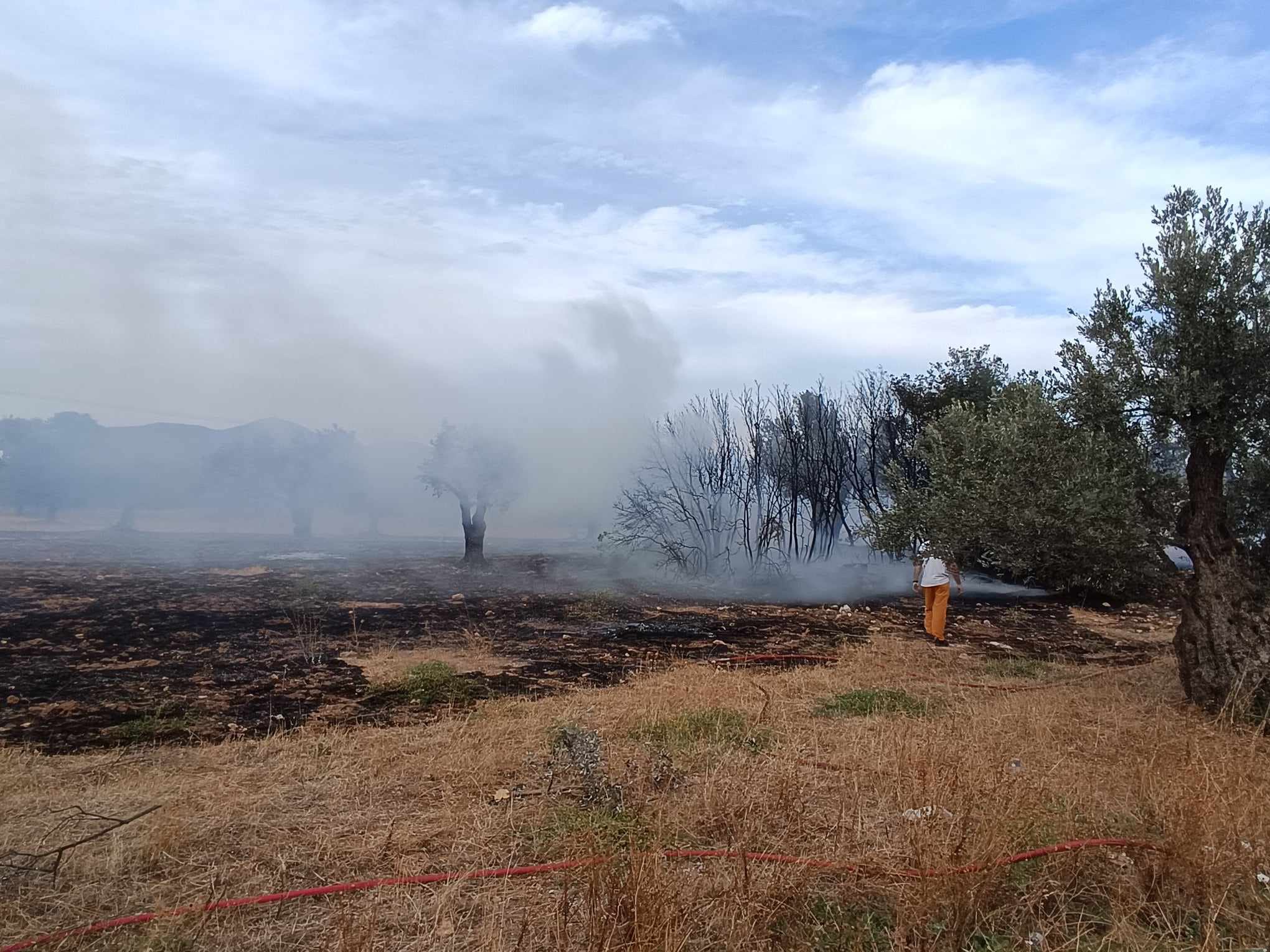 Πρόλαβε, όμως και έκαψε μια εγκαταλειμμένη αποθήκη και πέντε στρέμματα με θάμνους, ξερά χόρτα και μερικά δέντρα (πεύκα, ελιές, αμυγδαλιές).