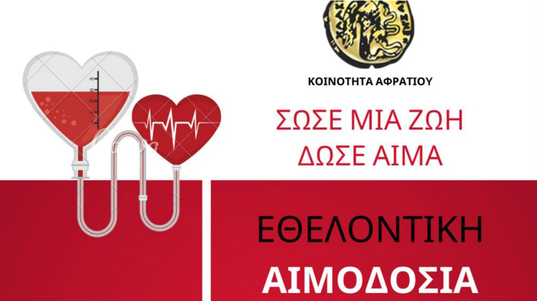 Κινητό συνεργείο αιμοληψίας θα βρίσκεται στα γραφεία της Κοινότητας Αφρατίου, από τις 9 το πρωί μέχρι την 1 το μεσημέρι του Σαββάτου.