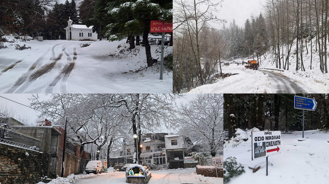 ΕΥΒΟΙΑ: Χιονισμένα τοπία στη Σέτα και στο Μετόχι Διρφύων - Που χρειάζονται αλυσίδες για τα αυτοκίνητα