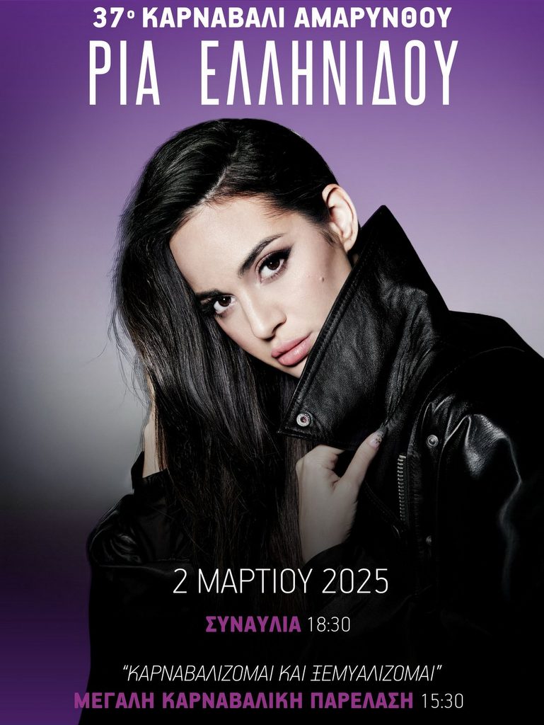 Την Κυριακή 2 Μαρτίου θα πραγματοποιηθεί η μεγάλη καρναβαλιστική παρέλαση στην παραλία Αμαρύνθου (ώρα έναρξης: 15.30 μμ), όπου θα τραγουδήσει η Ρία Ελληνίδου.