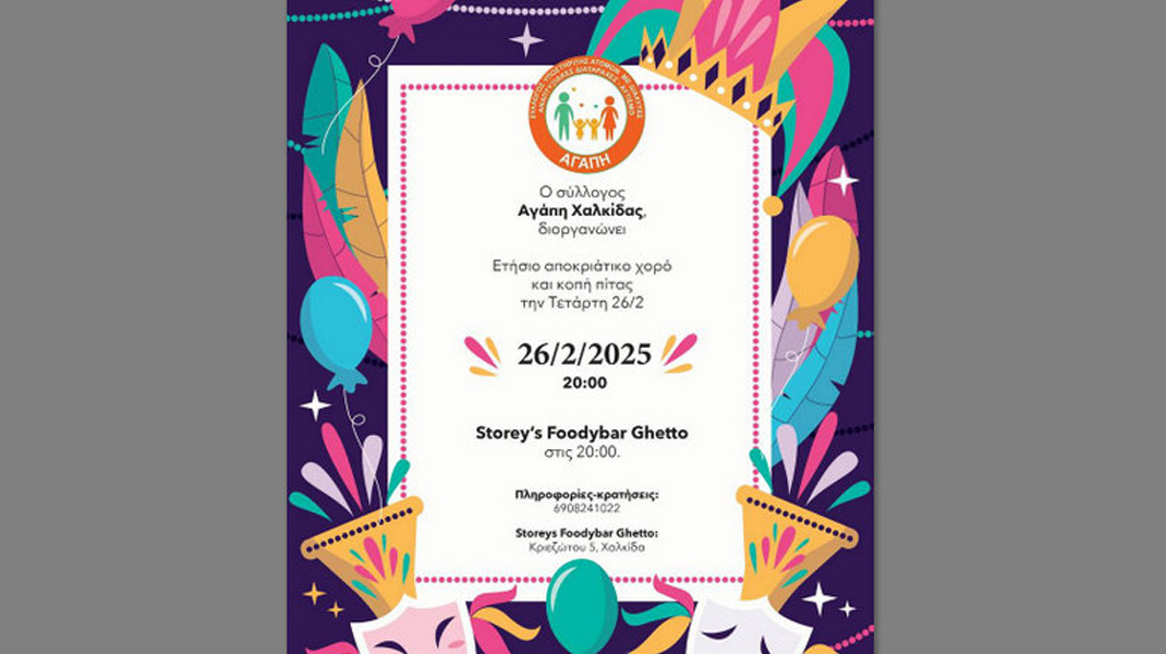 ΧΑΛΚΙΔΑ: Αποκριάτικος χορός και κοπή πίτας από τον Σύλλογο Αγάπη