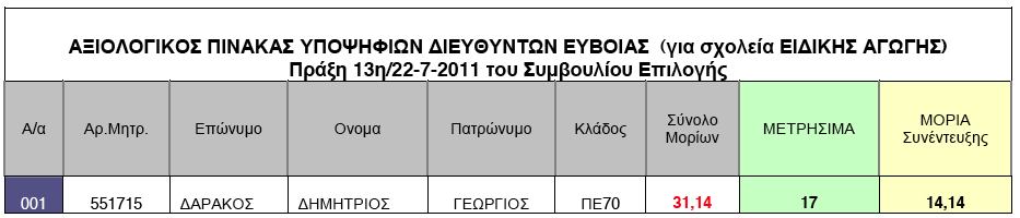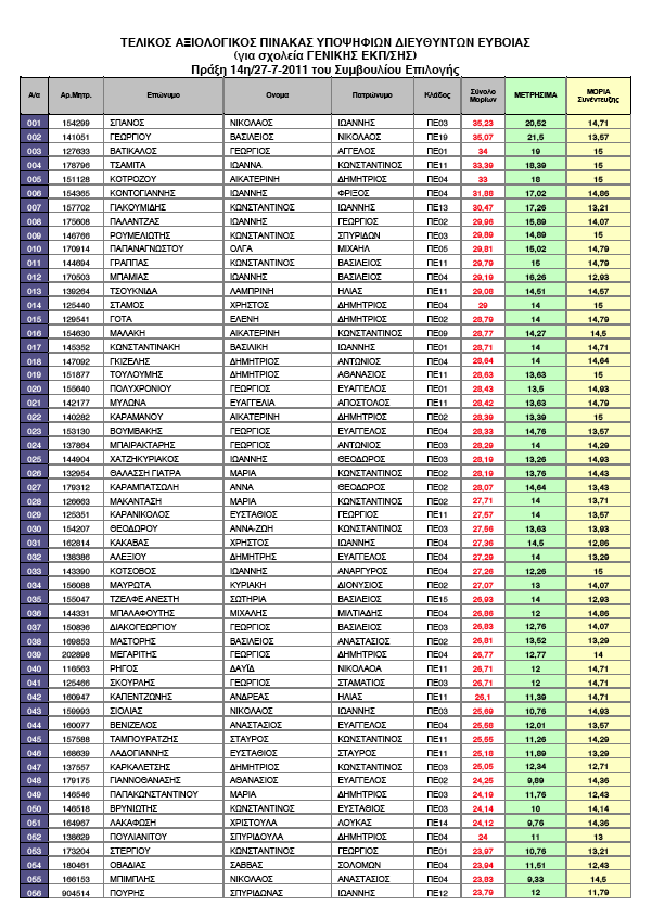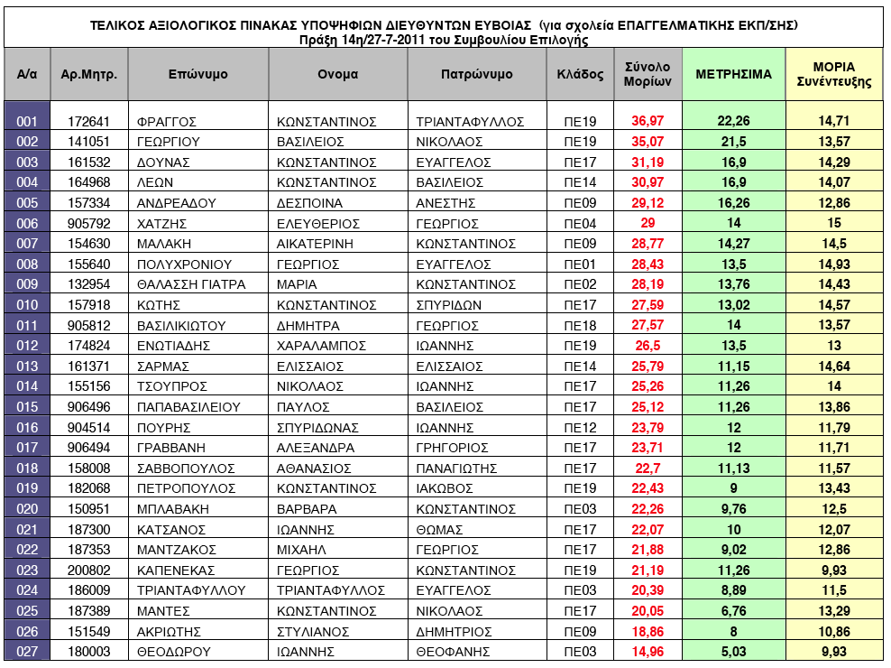 Δείτε όλα τα ονόματα των υποψηφίων Διευθυντών με τη βαθμολογία τους.