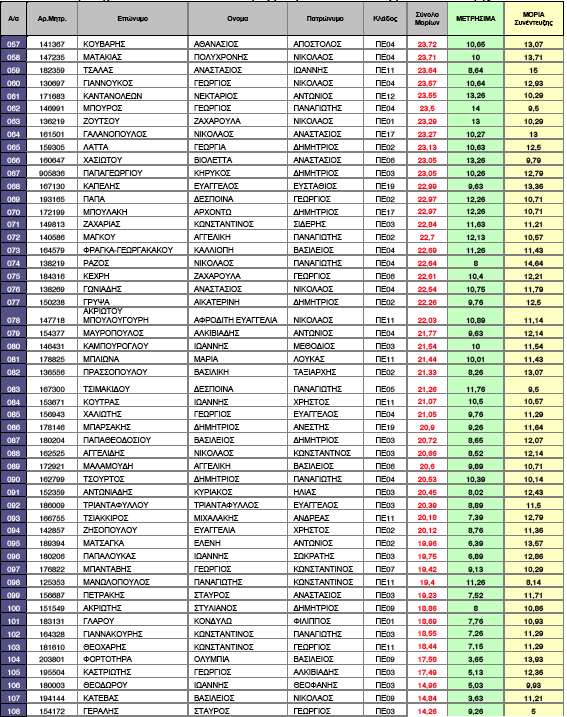 Δείτε στους πίνακες που ακολουθούν τι βαθμούς πήραν οι υποψήφιοι Γυμνασιάρχες - Λυκειάρχες: