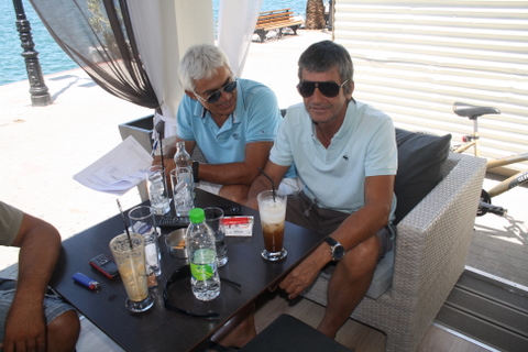 Από την άλλη, δεν θα κάτσουν να σκάσουν κιόλας, γι' αυτό και πίνουν χαλαροί τον καφέ τους σε κάποιο κοντινό cafe, ενώ ο τρίτος αδερφός, ο Χάρης, μάλλον είναι ...υπηρεσία και επιβλέπει τις εργασίες!