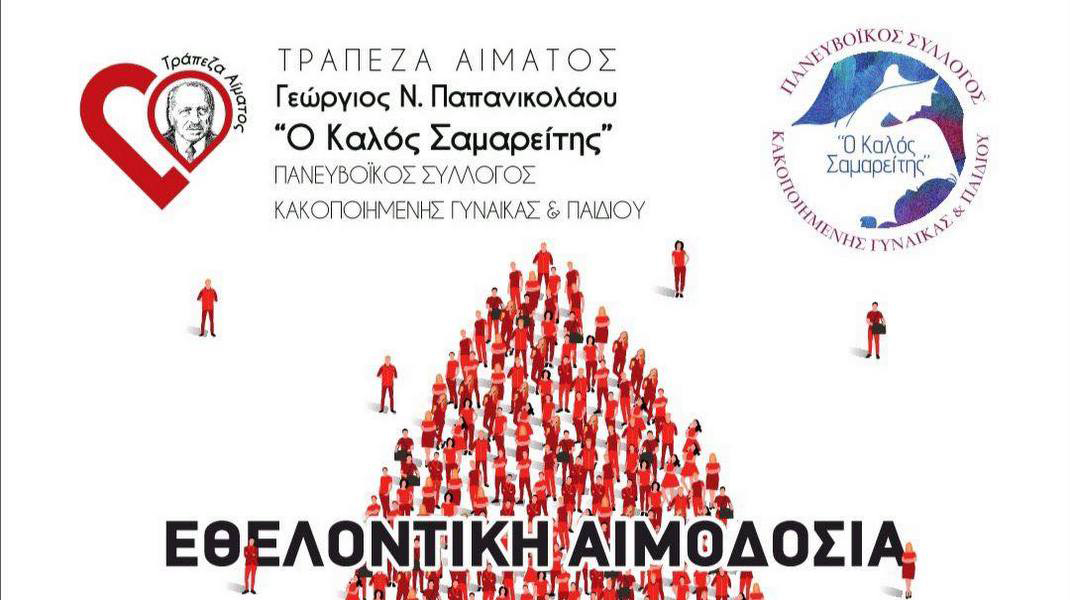 Η Τράπεζα αίματος "Γεώργιος Ν.Παπανικολάου" του Πανευβοϊκού Συλλόγου "Ο Καλός Σαμαρείτης" πραγματοποιεί Εθελοντική Αιμοδοσία την Παρασκευή 11 Απριλίου.