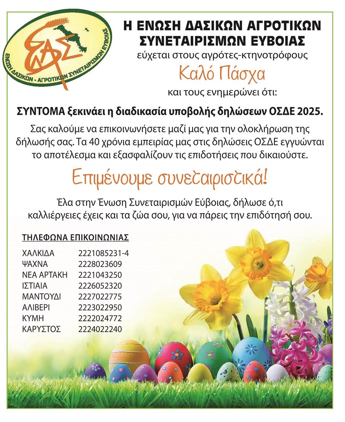 ΕΝΩΣΗ ΔΑΣΙΚΩΝ ΣΥΝΕΤΑΙΡΙΣΜΩΝ ΕΥΒΟΙΑΣ: Ξεκινάει η υποβολή δηλώσεων ΟΣΔΕ για το 2025