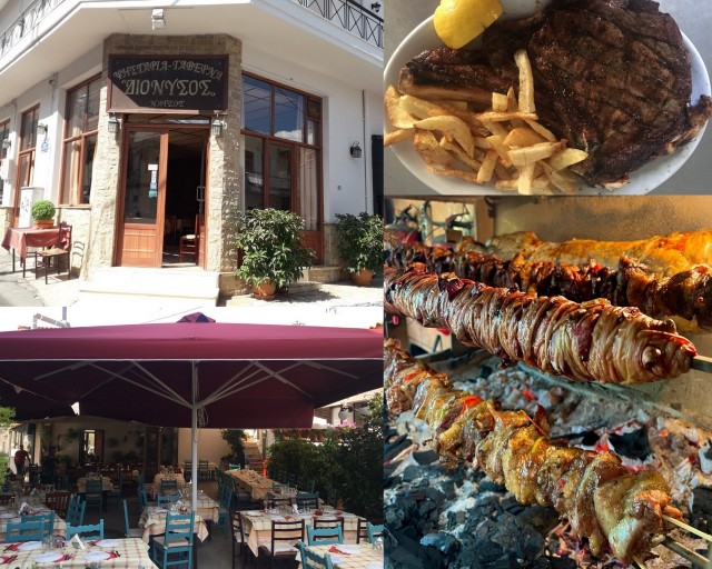 Παραδοσιακό στέκι με εξαιρετική σούβλα είναι η ψησταριά - ταβέρνα "Ο Διόνυσος" (δες εδώ που βρίσκεται). Σε καλωσορίζει στην καταπράσινη αυλή του με όλα τα καλούδια: ντόπια κρεατικά στη σχάρα ή τη σούβλα, κοκορέτσι, αρνάκι γάλακτος, χειροποίητο τυροπιτάρι με πλούσια φετούλα, μπιφτέκακι φρέσκο ζυμωμένο.