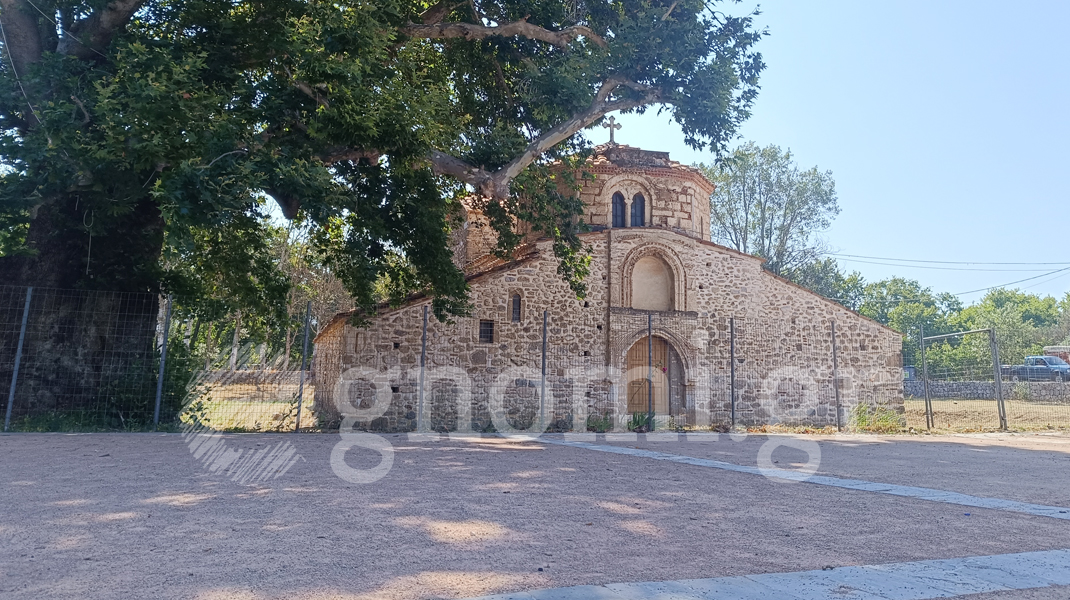 Αρχικά, σταματήσαμε στην κεντρική πλατεία στα Χάνια Αυλωναρίου, όπου βρίσκεται ο ιερός ναός του Αγίου Δημητρίου (φωτό κάτω), στη σκιά ενός υπεραιωνόβιου πλάτανου και χρονολογείται από το 13ο αιώνα. Πρόκειται για έναν τρισυπόστατο ναό με τρία κλίτη, αφιερωμένα, το δεξιό στην Αγία Θέκλα, το αριστερό στον Άγιο Ελευθέριο ή Άγιο Σεραφείμ, ενώ το κεντρικό κλίτος είναι αφιερωμένο στον Άγιο Δημήτριο.