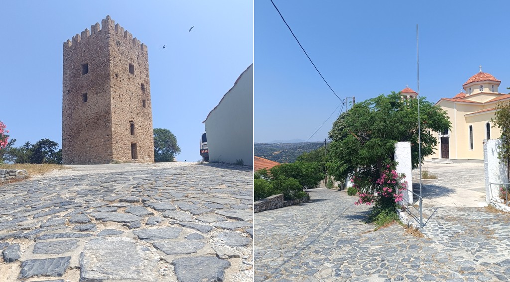 Επειτα, ανεβήκαμε στο χωριό Αυλωνάρι και περπατήσαμε στα πλακόστρωτα σοκάκια του χωριού, ενώ θαυμάσαμε τον ενετικό πύργο ύψους 19 μέτρων και την εκκλησία του Αγίου Νικολάου (φωτό κάτω).