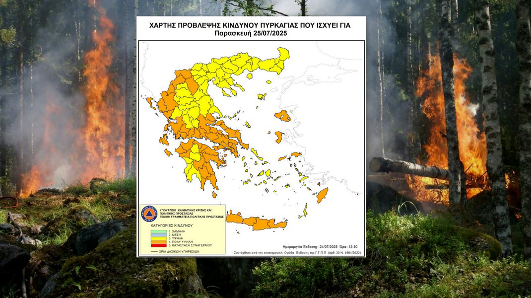 Σύμφωνα με το Χάρτη Πρόβλεψης Κινδύνου Πυρκαγιάς που εκδίδει η Γενική Γραμματεία Πολιτικής Προστασίας, για αύριο Παρασκευή 25 Ιουλίου, προβλέπεται πολύ υψηλός κίνδυνος πυρκαγιάς (κατηγορία κινδύνου 4) για την Εύβοια και αρκετές άλλες περιοχές της χώρας.