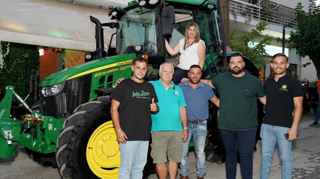 Ο Δημήτρης Μπασινάς και η Γεωργία Καλαμιγάκη ανάμεσα στους Δημήτρη και Βαγγέλη Παπαγεωργίου (αποκλειστικοί αντιπρόσωποι της John Deere AGROTECH στην Εύβοια) και τα στελέχη της εταιρίας Θάνος Βενιζέλος και Ισίδωρος Κοστογλούδης.