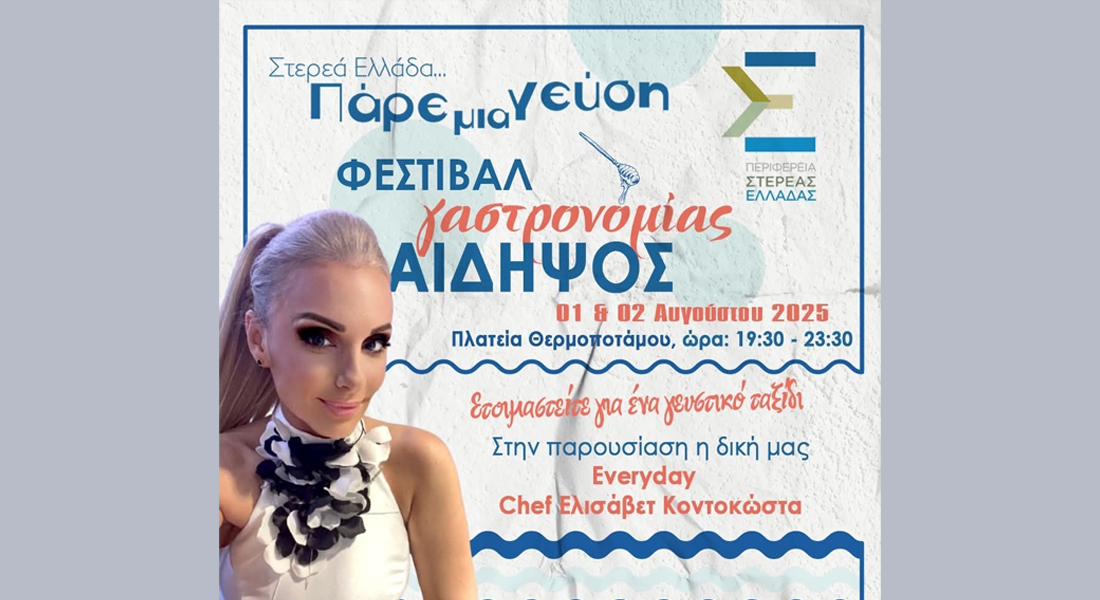 Με το σύνθημα «Στερεά Ελλάδα – Πάρε μια Γεύση», η Περιφέρεια Στερεάς Ελλάδας διοργανώνει ένα διήμερο Φεστιβάλ Γαστρονομίας στην Αιδηψό στη 1 και 2 Αυγούστου.