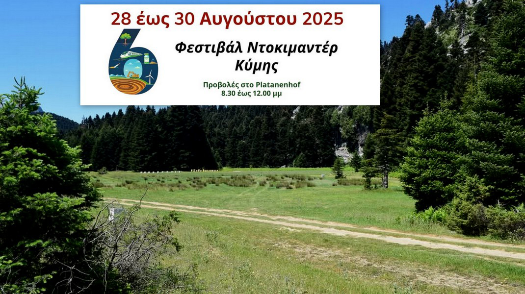 Η Εταιρεία Περιβάλλοντος Κύμης διοργανώνει το 6ο Φεστιβάλ Ντοκιμαντέρ, από την Πέμπτη 28 μέχρι το Σάββατο 30 Αυγούστου, στην περιοχή της Κύμης.