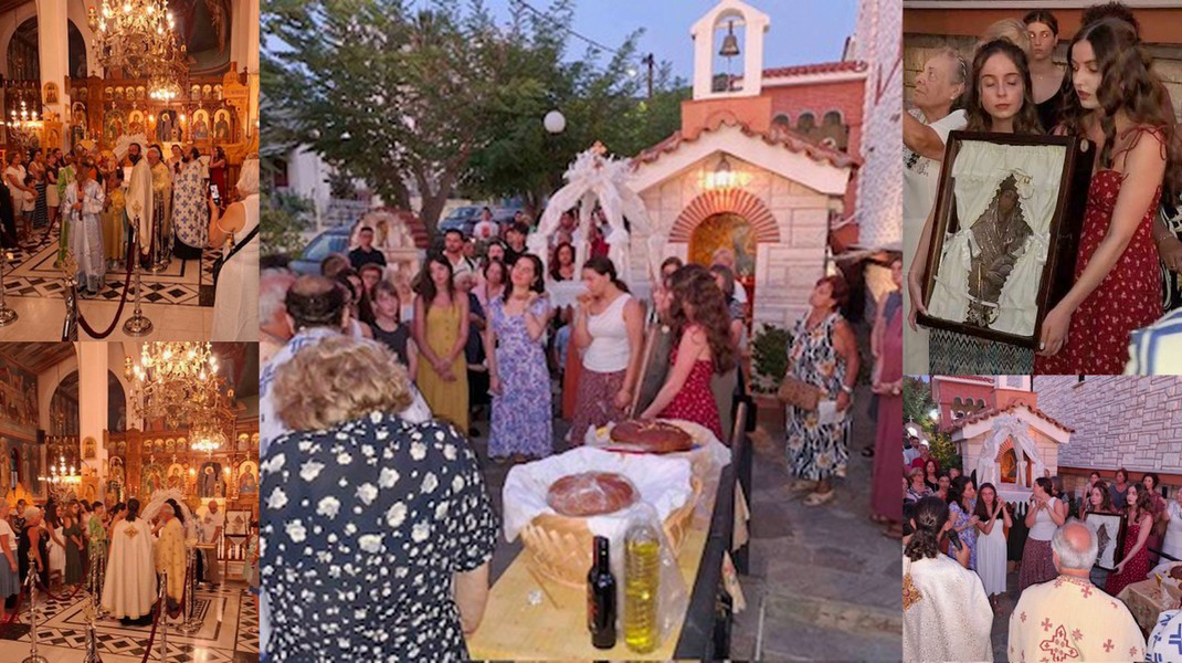Τα εγκώμια στην Παναγία απέδωσαν με συγκίνηση παιδιά του κατηχητικού, νέοι και νέες της ενορίας, υπό τη χοραρχία του πρωτοπρεσβυτέρου π. Χρήστου Νγκέλα.