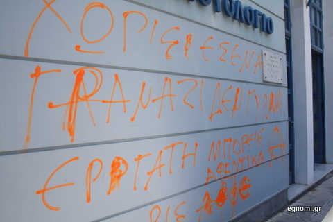 Κάποιοι βλέπετε είχαν φροντίσει να το βρωμίσουν με συνθήματα (φωτό κάτω), που ανεξάρτητα αν κάποιος συμφωνεί ή όχι με το περιεχόμενό τους, είναι εκνευριστικό να τα βλέπεις πάνω σε τοίχους να λερώνουν όμορφα κτήρια.