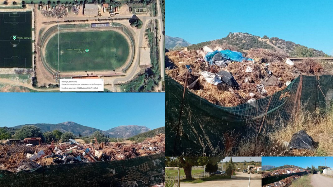 ΕΡΕΤΡΙΑ: Παράνομη χωματερή δίπλα στα γήπεδα ποδοσφαίρου και σε αρχαιολογικό χώρο
