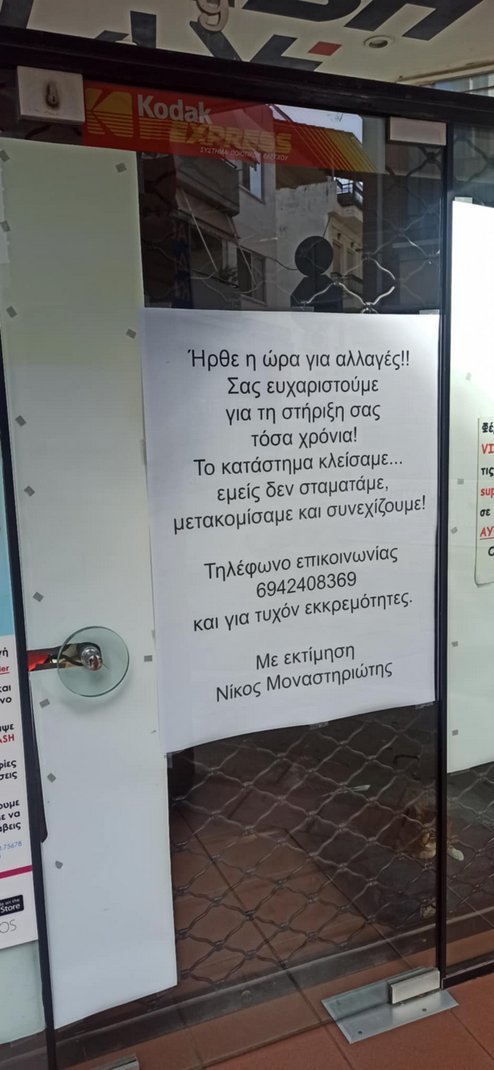 Τελικά αποφάσισε να κλείσει το κατάστημα και να συνεχίσει με άλλο τρόπο τις δραστηριότητές του, όπως αναφέρει η σχετική ενημερωτική πινακίδα στην πόρτα του καταστήματος.