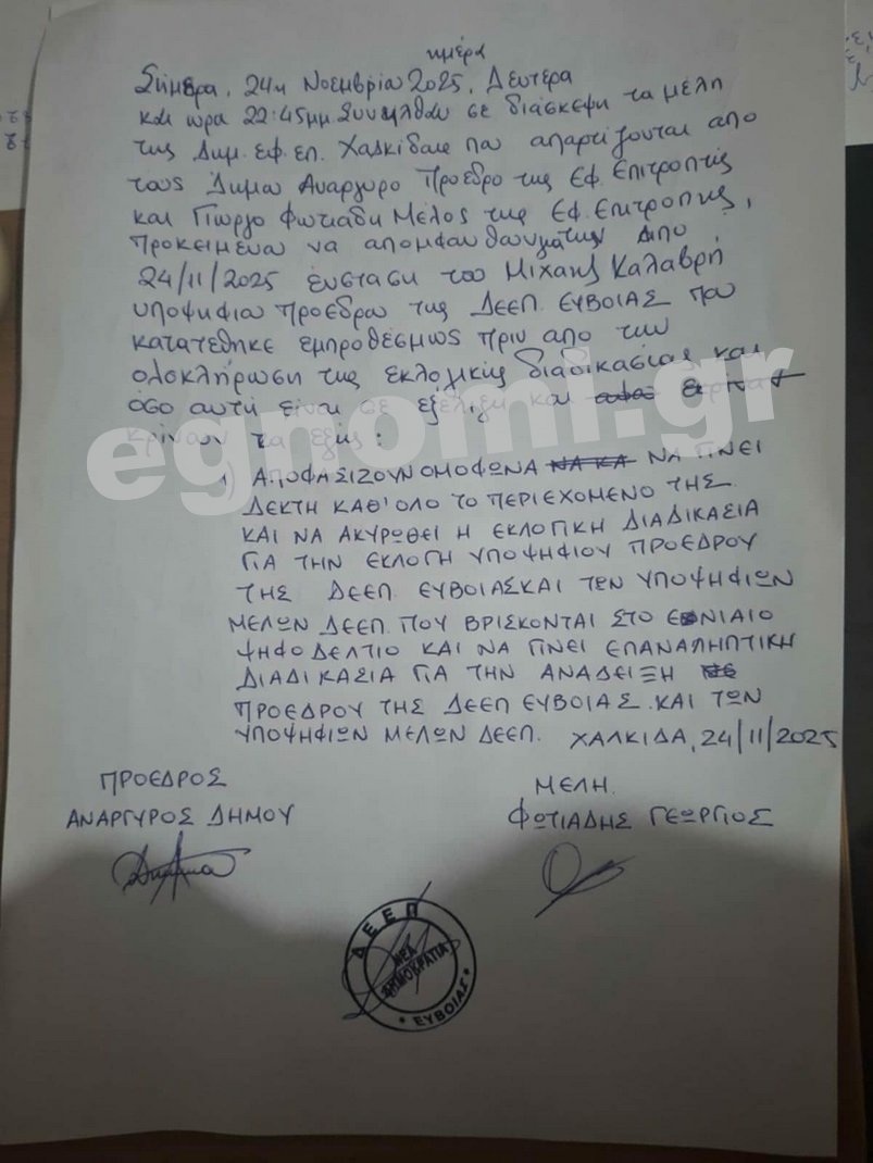 Σε εκλογικό θρίλερ εξελίσσονται οι εσωκομματικές εκλογές της Νέας Δημοκρατίας στην Εύβοια, για την ανάδειξη προέδρου και μελών της Διοικούσας Επιτροπής Εκλογικής Περιφέρειας (ΔΕΕΠ).