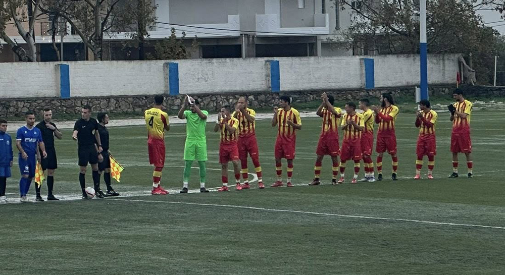 Ο Θέμης Αλεξίου εκτέλεσε φάουλ στην καρδιά της άμυνας και ο Παύλος Λάσκαρης (φωτό πάνω αριστερά) με καρφωτή κεφαλιά έστειλε την μπάλα στην άλλη γωνία της εστίας του εμβρόντητου Ηλία Διαμαντή κι έγραψε το 0-1.
