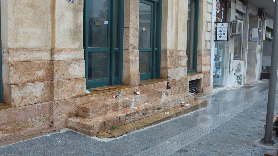 Τα σκαλιά του κτιρίου ήταν γεμάτο σκουπίδια, σε απόσταση αναπνοής από τους κάδους απορριμμάτων, και μάλιστα είχαν το τοποθετηθεί σαν ...ντεκόρ προκαλώντας την απορία των περαστικών.