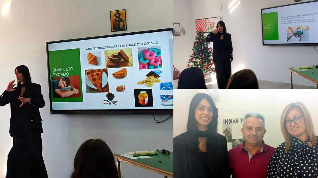 Παράλληλα, αναδείχθηκαν οι σύγχρονες διατροφικές προκλήσεις της εφηβείας και προτάθηκαν απλές, πρακτικές λύσεις για μια ισορροπημένη καθημερινή διατροφή. Οι μαθητές συμμετείχαν ενεργά, εκφράζοντας απορίες και προβληματισμούς
