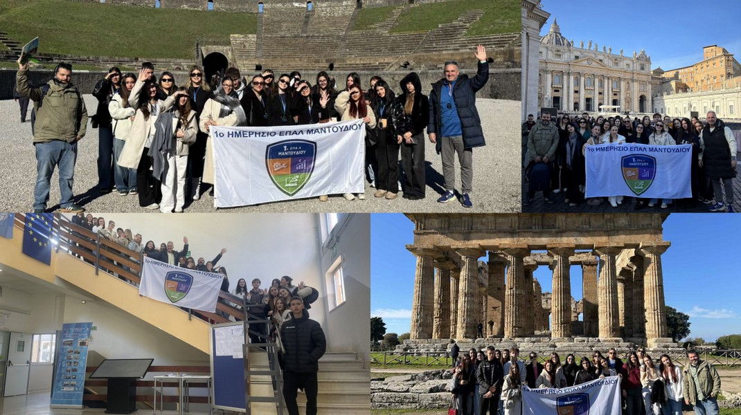 Μαθητές και μαθήτριες του 1ου Ημερήσιου ΕΠΑ.Λ. Μαντουδίου ταξίδεψαν στην Ιταλία από 28 Νοεμβρίου έως 11 Δεκεμβρίου, στο πλαίσιο του προγράμματος Erasmus+ ΚΑ1, υλοποιώντας το σχέδιο Μαθησιακής Κινητικότητας με τίτλο «Πρακτικές προβολής και προώθησης μικρών και μεσαίων τουριστικών επιχειρήσεων».