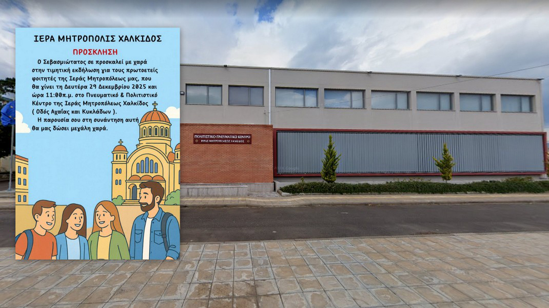 Η Μητρόπολη Χαλκίδος διοργανώνει εκδήλωση, με αφορμή τις εορτές του Αγίου Δωδεκαημέρου, για να τιμήσει τους νεοεισαχθέντες επιτυχόντες φοιτητές Σχολών της Τριτοβάθμιας Εκπαίδευσης για το ακαδημαϊκό έτος 2025-2026.