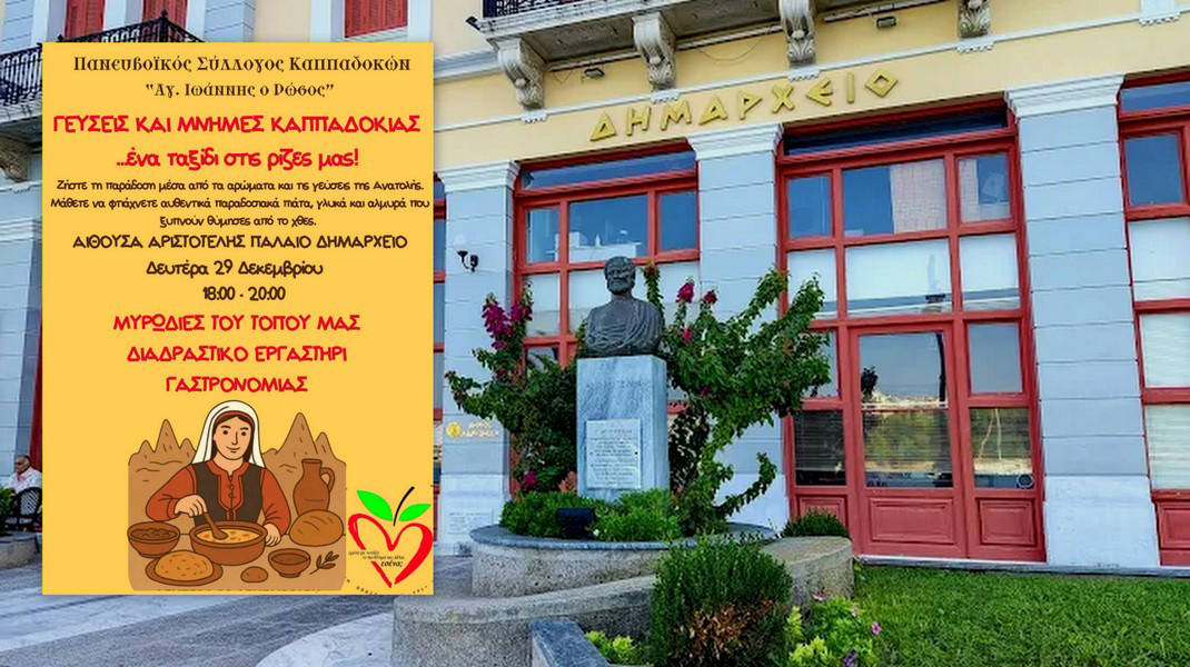 Ένα ξεχωριστό διαδραστικό εργαστήρι γαστρονομίας αφιερωμένο στις αυθεντικές γεύσεις της Καππαδοκίας διοργανώνει ο Πανευβοϊκός Σύλλογος Καππαδοκών «Άγιος Ιωάννης ο Ρώσος».