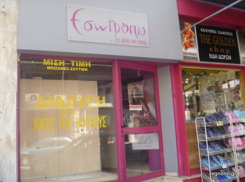Ατυχή κατάληξη είχε και το κατάστημα με εσώρουχα "Εσωτρόπιο" (φωτό πάνω δεξιά) που βρίσκεται ακριβώς δίπλα από το ψητοπωλείο "Θάνος" στην οδό Χαϊνά 2. Ο ιδοκτήτης του Δημήτρης Ευσταθίου αποφάσισε να βάλει λουκέτο αποκρυσταλλώνοντας τις πολύ δύσκολες ώρες που περνάει ο τομέας της ένδυσης στην Ελλάδα.
