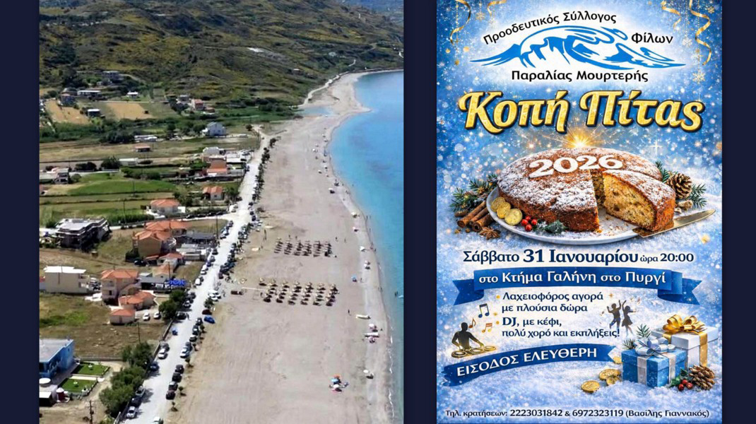 Με εορταστική διάθεση και ανοιχτή πρόσκληση προς όλους, ο Προοδευτικός Σύλλογος Φίλων Παραλίας Μουρτερής διοργανώνει την καθιερωμένη εκδήλωση για την κοπή της βασιλόπιτας το Σάββατο 31 Ιανουαρίου, στις 8 το βράδυ, στο κτήμα «Γαλήνη», στο Πυργί.
