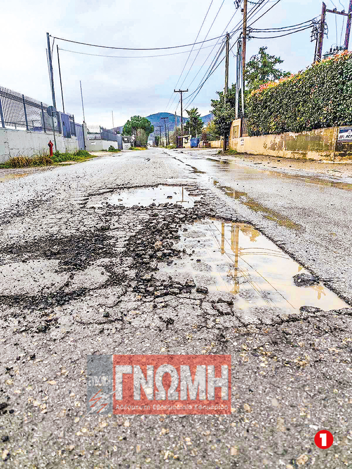 Το οδόστρωμα παρουσιάζει εκτεταμένες φθορές (φωτό 1) και οι τεράστιες λακκούβες, που υπάρχουν εδώ και χρόνια, αποτελούν επικίνδυνες παγίδες για τους οδηγούς και τα οχήματά τους.