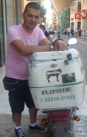 Είναι ο Γιώργος Μελέντης, ο οποίος κάνει δύο δουλειές, το πρωί δουλεύει σε εταιρεία ταχυμεταφορών και το βράδυ σε πιτσαρία, ως delivery-boy. Ο ίδιος μας λέει: "Αν προλάβαινα θα έκανα και τρίτη δουλειά, για να αυξήσω το εισόδημά μου."