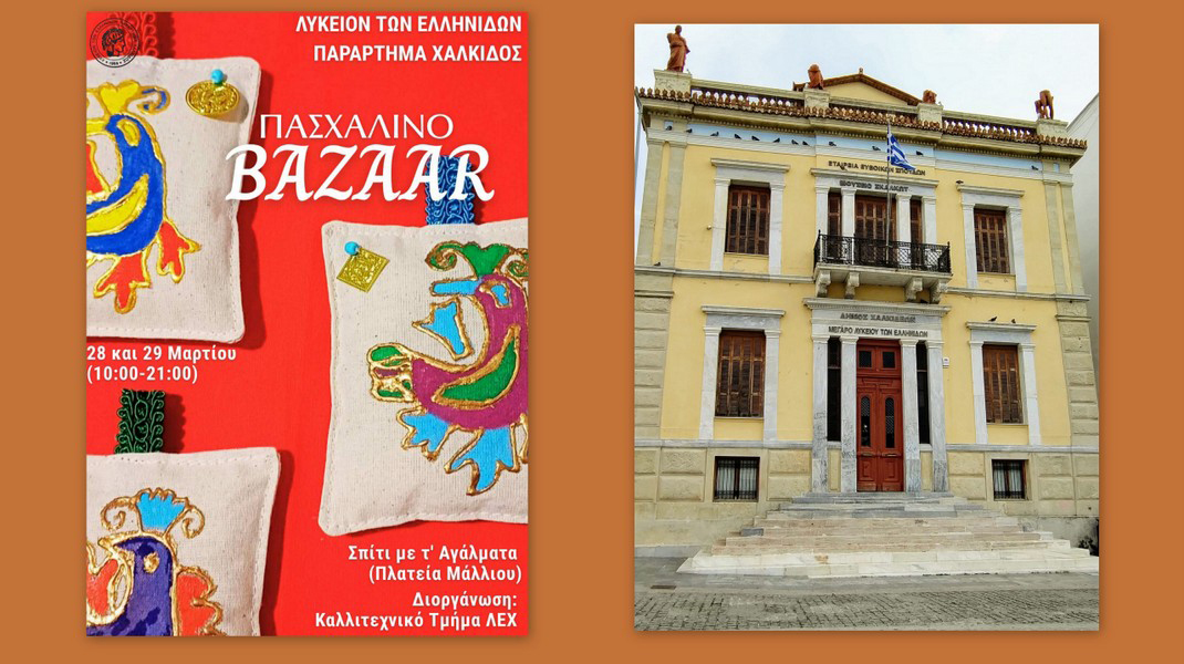 Με το παραδοσιακό μήνυμα «Σήμερα Ντούλα μ΄ πασχαλιά, σήμερα πανηγύρι!», το Καλλιτεχνικό Τμήμα του Λυκείου των Ελληνίδων Χαλκίδας διοργανώνει το καθιερωμένο Πασχαλινό του Μπαζάρ, προσκαλώντας μικρούς και μεγάλους σε ένα γιορτινό διήμερο.