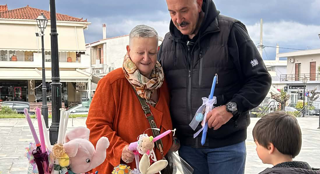 Δωρεάν λαμπάδες σε μικρούς και μεγάλους μοίρασε η Σταυρούλα Γιοβανάκη (φωτό), υπεύθυνη για το Χαριστικό - Ανταλλακτικό παζάρι, το πρωί της Κυριακής 5 Απριλίου στην πλατεία της Δροσιάς.