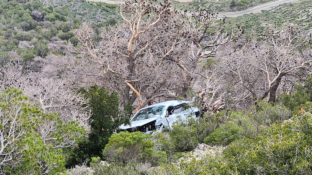 Αυτοκίνητο έπεσε σε γκρεμό - Ενα ξερό δέντρο έσωσε τη ζωή του οδηγού