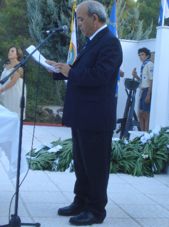 Η κύρια ομιλία έγινε από την κυρία Μαρία Καλμπουρτζή, οικονομολόγο, κόρη του αγνοούμενου ήρωα του πολέμου του 1974 αντισυνταγματάρχη πυροβολικού Στυλιανού Καλμπουρτζή, του οποίου η προτομή αποκαλύφθηκε πρόσφατα από το Πρόεδρο της Δημοκρατίας Κάρολο Παπούλια στη Σχολή Πυροβολικού στο Μεγάλο Πεύκο.