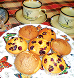 Χτυπώ το βούτυρο, τη ζάχαρη, τη βανίλια και τα αβγά. Προσθέτω τα κράνμπερις, ανακατεύω. Προσθέτω το αλεύρι κοσκινισμένο, εναλλάξ με το γάλα και ενσωματώνω απαλά.