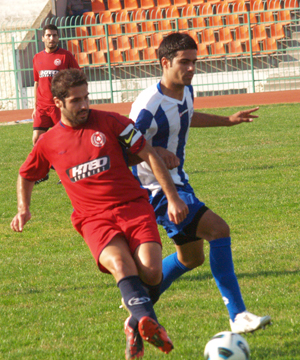 Το μαναδικό γκολ του αγώνα στο 65' ο Βεζιρτζόγλου (στη φωτό δεξιά σε φάση από το σημερινό αγώνα με αντίπαλο τον πρώην συμπαίχτη του στην Κύμη Κουτσαυλή). Στο 75' αποβλήθηκε ο Κηρύκος της Προποντίδας.