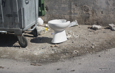 Ο,τι θέλει πετάει ο καθένας στους δρόμους της Χαλκίδας. Στην οδό Πανίδου δίπλα σε ένα κάδο σκουπιδιών συναντήσαμε μέχρι και καμπινέ! Προφανώς λειτουργεί σαν δημόσια τουαλέτα, ώστε αν σας έρθει ανάγκη να μην τρέχετε σε μαγαζιά. Λίγο χαρτάκι να βάλουν μόνο για να μην λείπει τίποτα... Τι άλλο θα δούμε ρε σεις;
