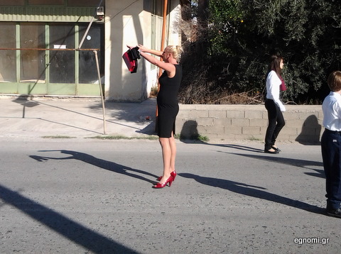 Σε δυο πόζες (δεξιά και κάτω) την πέτυχε ο φακός του egnomi και στις δυο έδινε οδηγίες στους μαθητές της πώς να πετύχουν τον καλύτερο βηματισμό. Με...φωνή που καθήλωνε και τους πιο ατίθασους νεαρούς, η εντυπωσιακή καθηγήτρια κατάφερε να κάνει το σχολείο της να ξεχωρίσει. Μπράβο της!