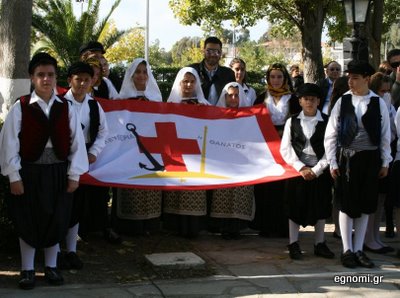 Με τις παραδοσιακές τους στολές και κρατώντας σημαία με το σύνθημα "Ελευθερία ή Θάνατος" οι μικροί μαθητές του χορευτικού τμήματος του συλλόγου Κ. Κανάρης έλαβαν και φέτος μέρος στην παρέλαση της εθνικής επετείου της 28ης Οκτωβρίου.