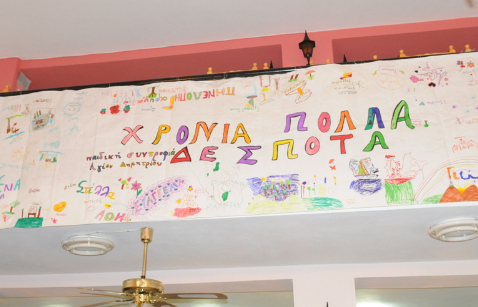 Μετά την διανομή του αντίδωρου, τα παιδιά των κατηχητικών του Μητροπολιτικού Ναού είπαν τα Χρόνια Πολλά στον Σεβασμιώτατο, προσφέροντάς του και ένα πανό με τις ευχές τους, ζωγραφιές που ετοίμασαν και τα ονόματά τους.