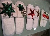 Ένα ζευγάρι χριστουγεννιάτικες παντόφλες: Αγοράστε απλές και μονόχρωμες παντόφλες και ράψτε μόνοι σας χριστουγεννιάτικα λαμπερά στολίδια!