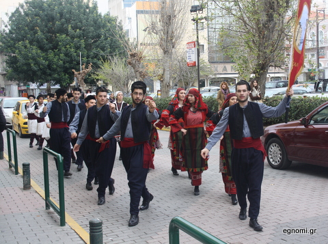 Με σημείο έναρξης την οδό Γαζέπη, ο σύλλογος διέσχισε και τις υπόλοιπες εμπορικές οδούς της πόλης (Κριεζώτου,Ερμού,Αβάντων), τραβώντας τα βλέμματα των περαστικών, οι οποίοι σταματούσαν για να τους απολαύσουν. Μετά από τρεις ώρες στους δρόμους, ο χορευτικός σύλλογος Χαλκίδας τερμάτισε την περιοδεία του στην πόλη, στον πεζόδρομο της οδού Καραμουρτζούνη. Και το πανηγύρι άρχισε...