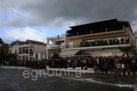 Με πολύ κόσμο (φωτό κάτω) γιορτάστηκαν τα Θεοφάνεια στην Ερέτρια, στην προβλήτα των φέρι μποτ. Πολλοί νέοι της περιοχής τήρησαν το έθιμο και βούτηξαν για το σταυρό παρά την κακοκαιρία (φωτό δίπλα).