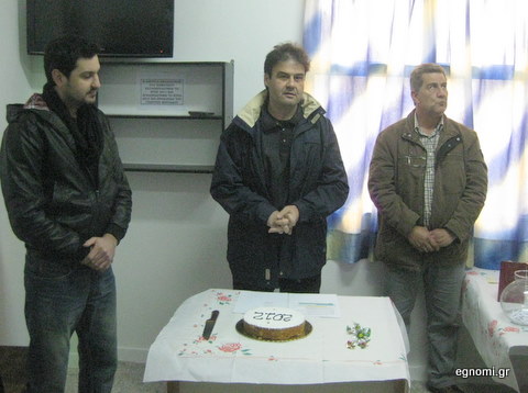 Στη φωτό πάνω οι Γιώργος Μπιτάδος, Σπύρος Αθανασίου και Δημήτρης Κόκκινος, λίγο πριν την κοπή της πίτας. Στη φωτό κάτω, άποψη της νέας αίθουσας, που εγκαινιάστηκε την ημέρα της εκδήλωσης.