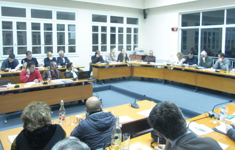 Παρόντες στη συνεδρίαση του Δημοτικού Συμβουλίου (φωτό πάνω) ήταν υπάλληλοι του ΙΚΑ Θήβας, ενώ στη συζήτηση συμμετείχαν επίσης οι Αντιπεριφερειάρχες Βοιωτίας Γιώργος Μουλκιώτης και Κων/νος Μπακομήτρος και πρόεδροι-εκπρόσωποι φορέων και συλλόγων της περιοχής.