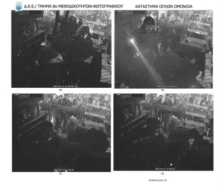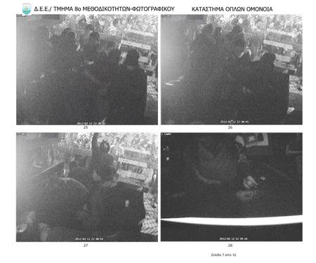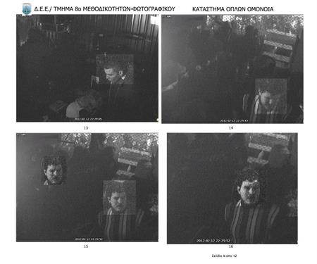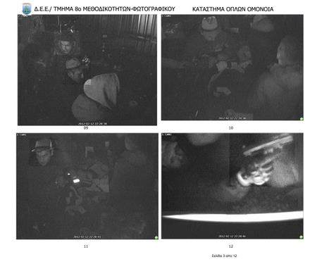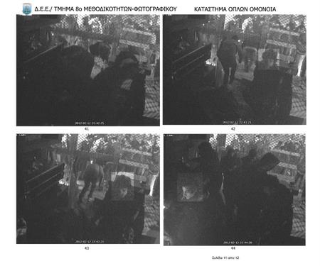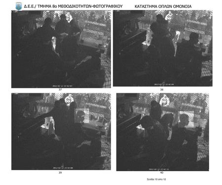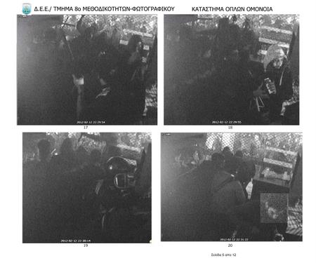 Στη δημοσιότητα δόθηκαν μετά από άδεια του Εισαγγελέα και νέες φωτογραφίες δραστών από τα επεισόδια της Κυριακής 12 Φεβρουαρίου. Πρόκειται για 12 φωτογραφίες με τέσσερα στιγμιότυπα η κάθε μία που τραβήχτηκαν από το κλειστό κύκλωμα τηλεόρασης οπλοπωλείου της Ομόνοιας, που λεηλατήθηκε.