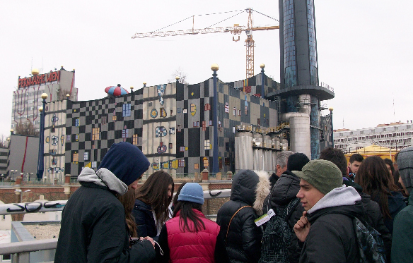 Ειδικότερα, το πρωί της Πέμπτης 23/2 επισκέφθηκαν την περιοχή Spittelau όπου βρίσκεται το μεγαλύτερο κέντρο παραγωγής ενέργειας στην Αυστρία.Η εντυπωσιακή αρχιτεκτονική εμφάνιση των εγκαταστάσεων οφείλεται στο φημισμένο καλλιτέχνη Friedensreich Hundertwasser κι αποτελεί ένα από τα αξιοθέατα τέχνης της πόλης ( στη φωτό Χαλκιδέοι μαθητές μπροστά στο εργοστάσιο).